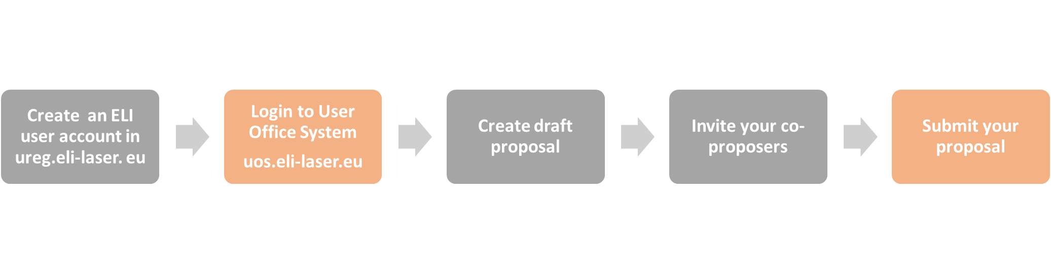 Invited co-proposers must register for an ELI account and log in to the User Office System (UOS) at least once to gain access to the proposal.