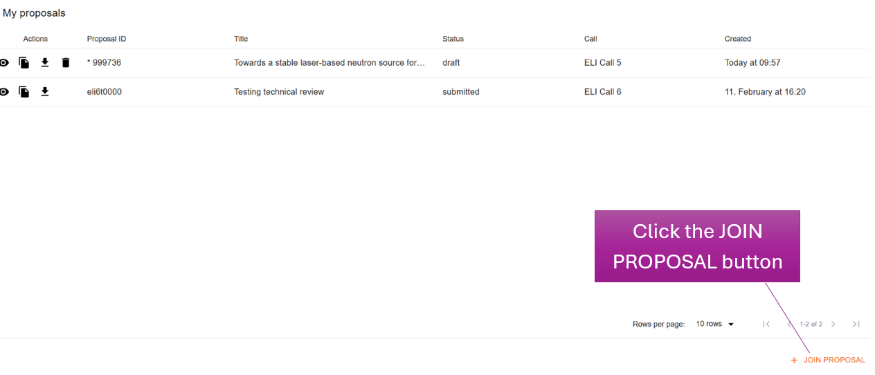 On your dashboard, scroll down to the bottom of the screen and click the JOIN PROPOSAL button